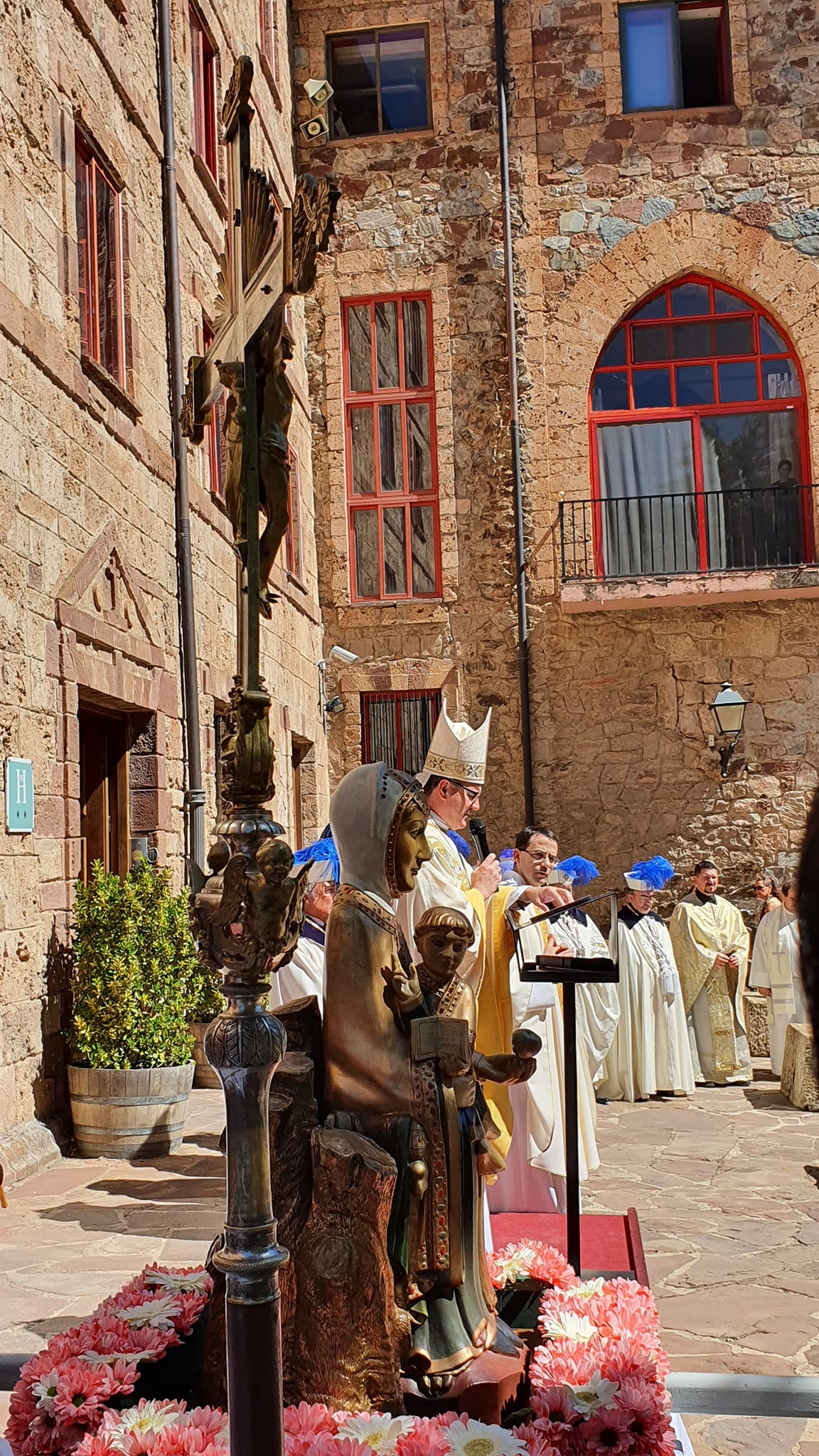 Posteriormente a la Santa Misa, presidida por nuestro Obispo D. Santos, y a la Procesión por la plazuela de la Hospedería, concluimos la jornada con una comida popular y sobremesa en la misma.