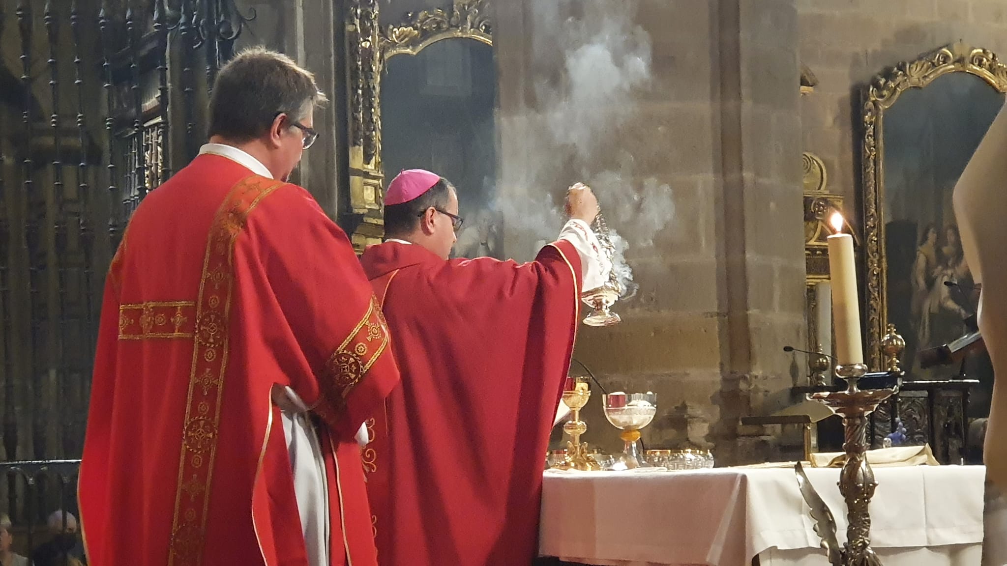 Después de la tradicional Eucaristía en la Concatedral de La Redonda, presidida por el Obispo Diocesano Mons. D. Santos Montoya, acompañado en esta edición por Mons. D. Félix Lázaro, escolapio riojano (Obispo Dimisionario de Ponce, Puerto Rico)